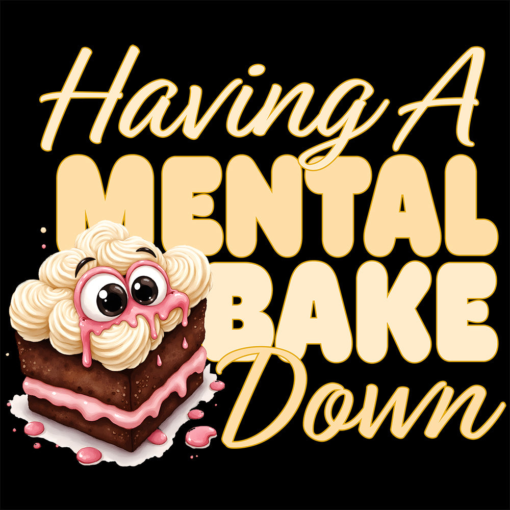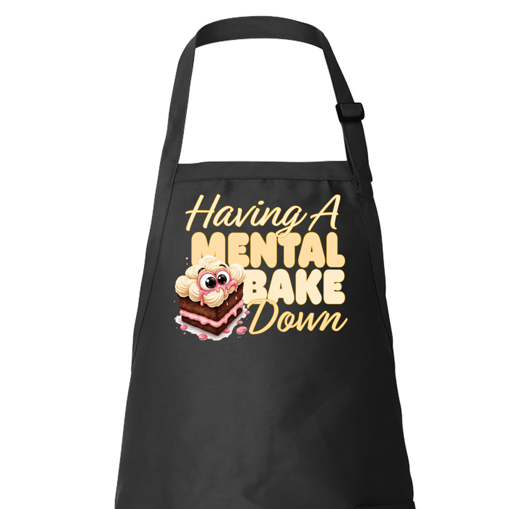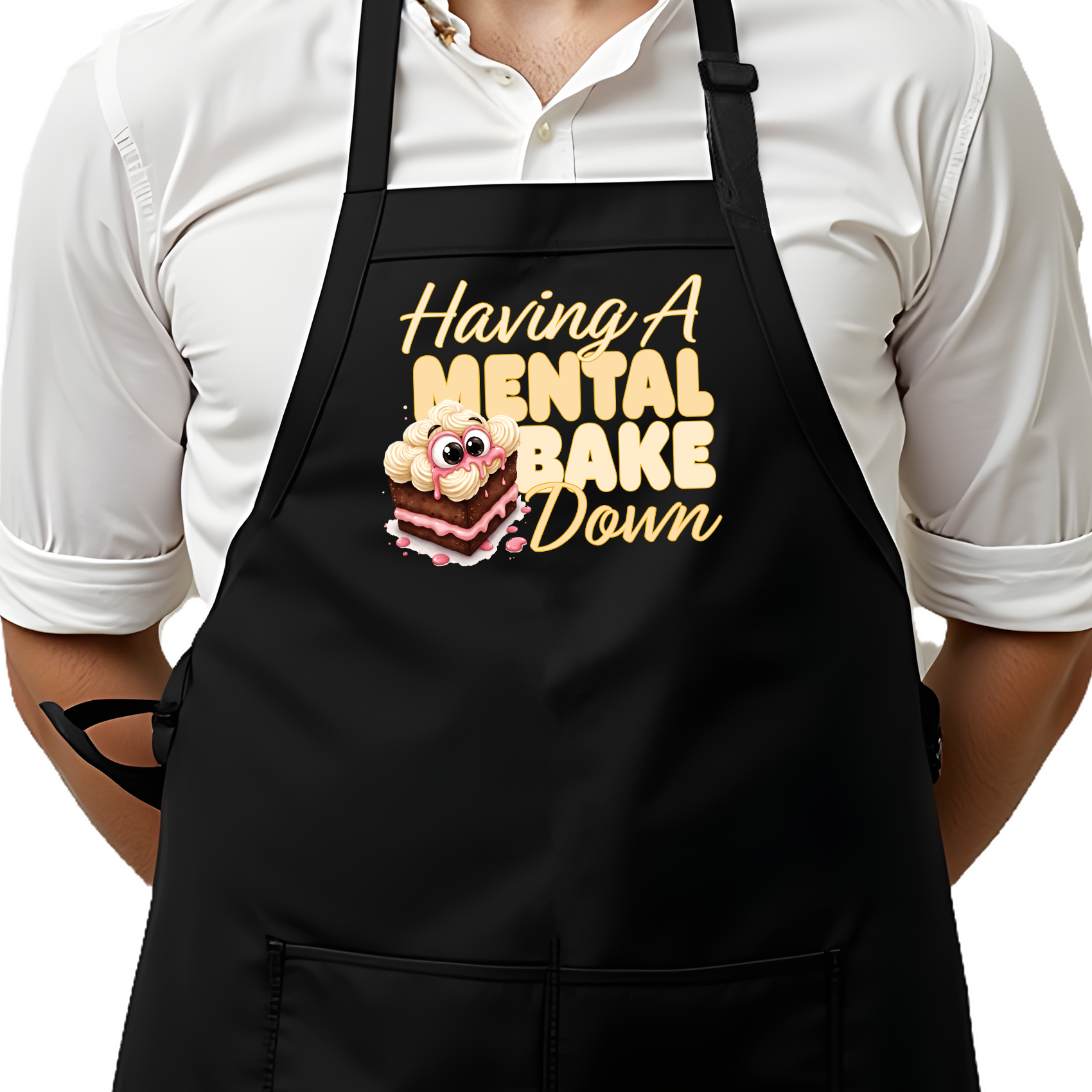 Printed Funny Kitchen Apron, Mental Bake Down Design, Black, Adjustable Straps, Cooking, BBQ, Grilling