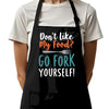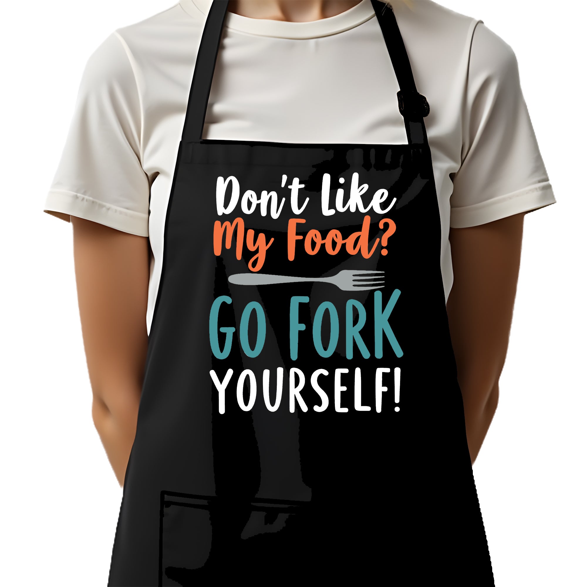 Printed Funny Kitchen Apron, Go Fork Yourself Design, Black, Adjustable Straps, Cooking, BBQ, Grilling